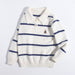 Kids Striped Cashmere Sweater Polo Neck Embroidered Bear Cashmere Pullover