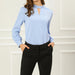 Esalta il tuo guardaroba con questa blusa in seta, un perfetto mix di raffinatezza ed eleganza moderna. Caratterizzata da un'elegante scollatura a goccia con un raffinato dettaglio sul colletto, questa blusa aggiunge un tocco di fascino femminile pur rimanendo elegante, perfetta per un look professionale o da sera. Le maniche lunghe con polsini abbottonati creano una silhouette elegante, mentre il tessuto in seta, lussuosamente liscio, offre una sensazione traspirante e delicata sulla pelle. Abbinala senza sforzo a pantaloni sartoriali, gonne o jeans per un look versatile e senza tempo, perfetto sia per l'ufficio che per le uscite serali.