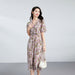 Romantico e raffinato, questo abito midi in seta presenta una morbida scollatura a V avvolgente, delicate maniche a sbuffo e una cintura delicatamente plissettata che esalta la figura. Decorato con una stampa floreale all-over color acqua.