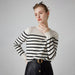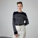 Arricchisci il tuo guardaroba quotidiano con questo maglione in cashmere, pensato per un'eleganza e un comfort senza pari. Realizzato in 35% cashmere, offre una morbidezza lussuosa e un calore leggero. L'intramontabile motivo a righe orizzontali aggiunge un tocco nautico chic, mentre lo scollo rotondo e le maniche lunghe lo rendono versatile, perfetto da indossare a strati o da solo.